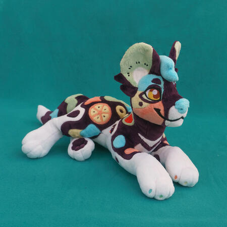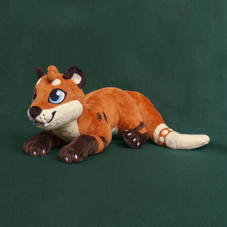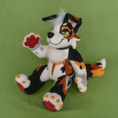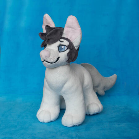 Beanie baby styled plush filled with plastic pellets for weight and posability! They measure ~11" long from front legs to back.Prices start at 650€ and go up based on complexity.