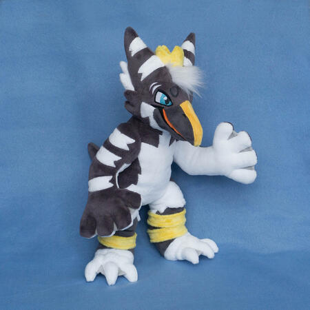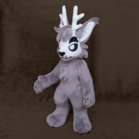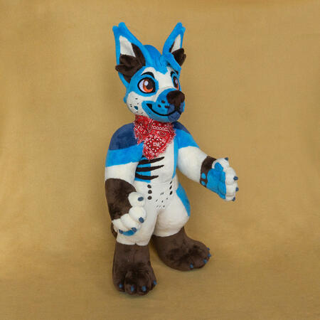 Standing anthro plush. Stuffed on the firmer side to hold its shape nicely. Includes jointed, rotating arms for posability. Measures 20" tall.