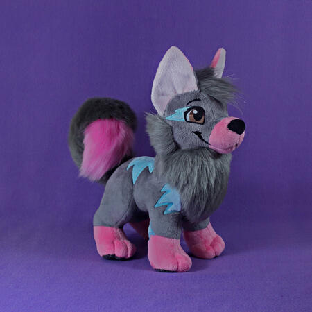 Standing feral plush. Static pose and stuffed on the firmer side to hold its shape nicely. Measures 13" tall.